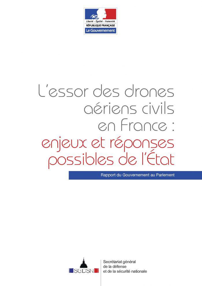 L’essor des drones aériens civils en France : enjeux et réponses possibles de l’Etat Rapports 20 octobre 2015 Face à la multiplication des survols de zones sensibles par des drones, le Premier ministre a confié au SGDSN la mission d’animer une réflexion interministérielle sur le sujet et de lui présenter des propositions susceptibles de permettre une lutte plus efficace contre l’usage malveillant de drones. Sécurité Télécharger le rapport du gouvernement au parlement sur les drones PDF - 964.4 KB Publications qui pourraient vous intéresser Guide "Tous responsables" Sécurité Actualités du SGDSN Guides | 20 novembre 2025 Le réseau des AISI publie les premiers résultats d’expérimentations conjointes Cybersécurité Sécurité INESIA Informations | 14 février 2025 Découvrir toutes les publications du SGDSN
